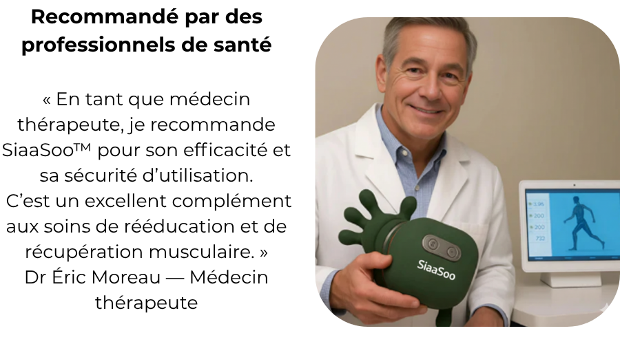 Évite l’utilisation en cas de lésion ou d’inflammation locale, port de pacemaker, grossesse à risque ou avis médical contraire. En cas de pathologie, demande l’avis d’un professionnel de santé.