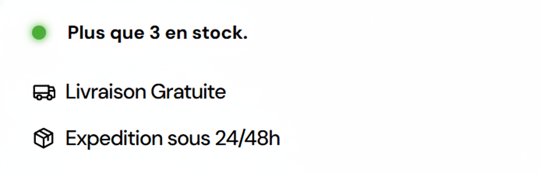 L’ensemble des commandes est préparé sous 24 heures, avec un délai de livraison estimé entre 3 et 5 jours ouvrables.